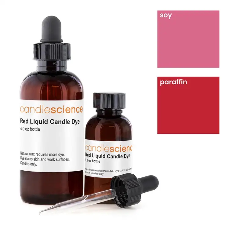 Наш красный жидкий краситель для свечного воска придает свечам цвет от розового до красного в зависимости от типа воска и количества красителя. Например, краситель для свечей из соевого воска обычно дает оттенки от светлых до средних, а для парафина — от пастельных до темных. Экспериментируйте.